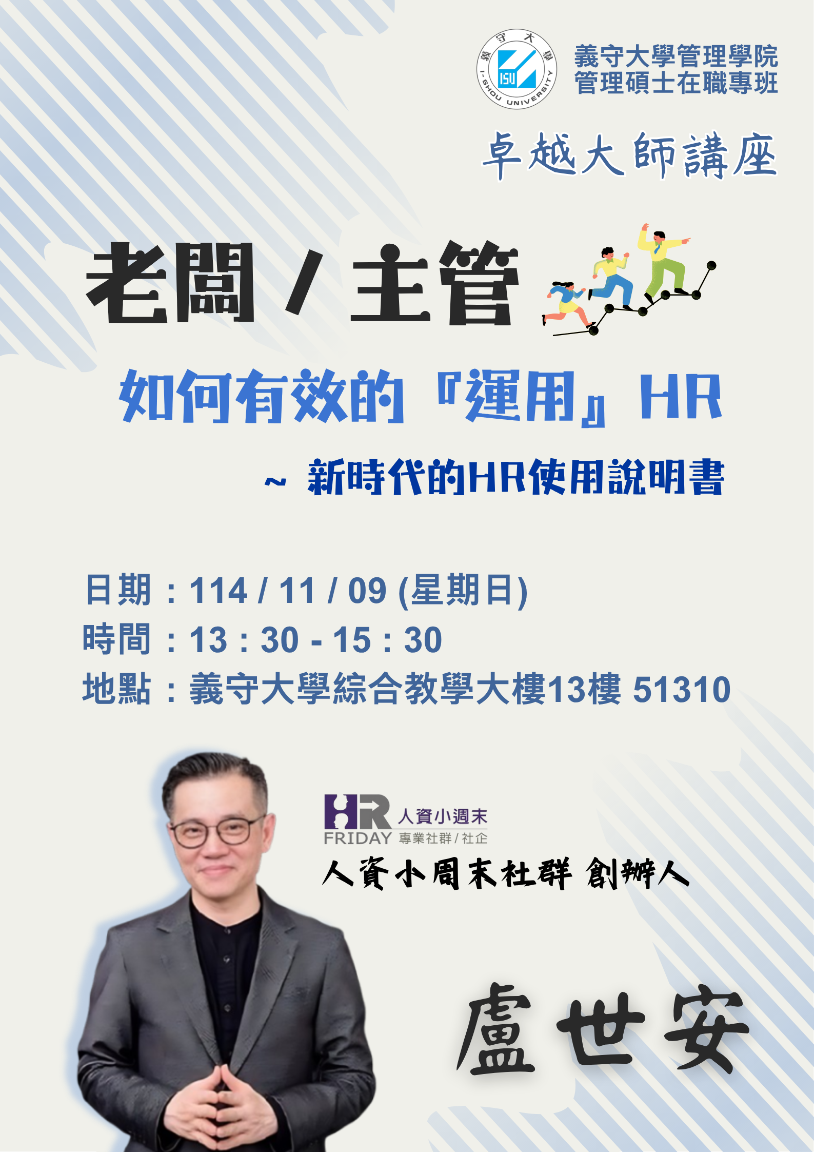 題目:老闆/主管 如何有效的『運用』HR ~ 新時代的HR使用說明書