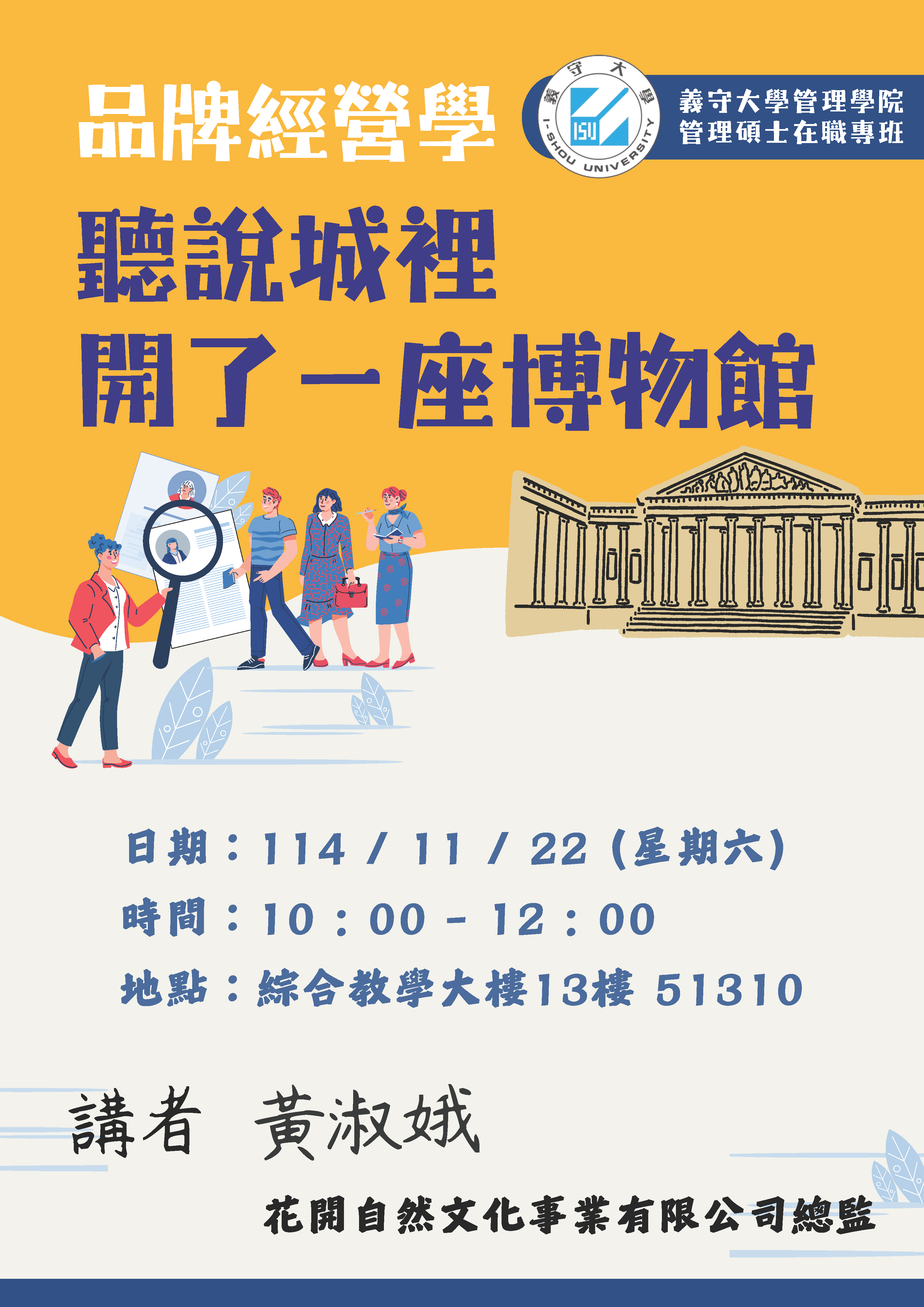 【公告】本班於11月份安排二場卓越大師講座 有興趣的同學歡迎參閱內文